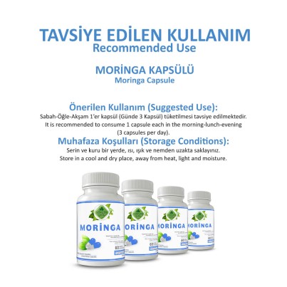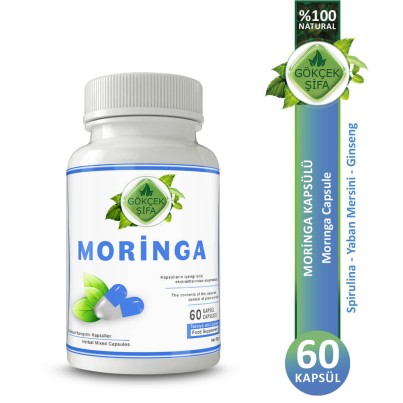 İçindekiler : Moringa Ekstresi, Spirulina Ekstresi, Kapsül: Sığır Jelatini, Yaban Mersini Ekstresi, Kore Ginsengi Ekstresi, Pirinç Nişastası, Topaklanmayı Önleyici: Yağ Asitlerinin Magnezyum Tuzları, Topaklanmayı Önleyici: Silisyum Dioksit.